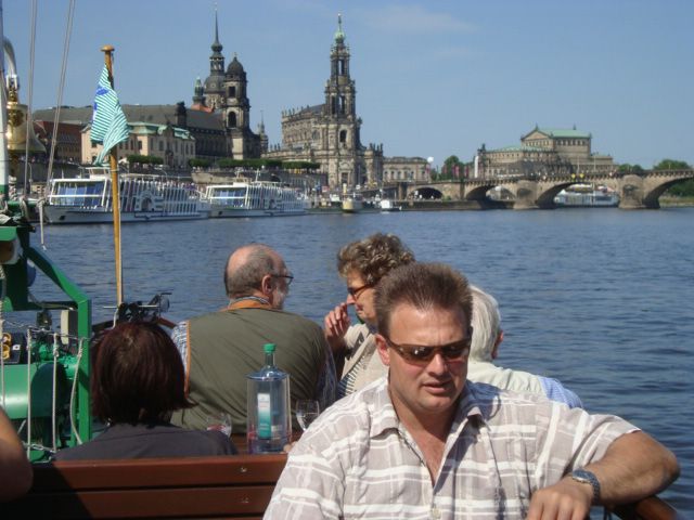 Nach diesem Besuch konnte man ein paar Stunden individuell gestalten. Auf den Straßen steppte der Bär - im Schatten der Bäume lümmelten die geschafften Teilnehmer des Kirchentages. Bei einem kühlen Getränk in einem der zahlreichen Restaurants in der Nähe von Zwinger, Schloß und Frauenkirche ließ es sich gut aushalten.