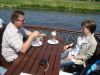 Unser sorgsamer Busfahrer Lutz, sowie ein sehr gut organisierter Kirchentag ermöglichten uns ein stressfreies und pünktliches Besteigen unseres historischen Raddampfers "Krippen". Es ging über 2 Stunden bei herrlichem Wetter auf der Elbe nach Meißen - vorbei an Elbwiesen, Villen, Schlössern und Weinbergen. Im wunderschönen Meißen flanierte ein jeder nach eigenem Ermessen, um die hübschen kleinen Läden, die urigen Gaststätten oder die Albrechtsburg unsicher zu machen. Zurück ging es dann wieder im Reisebus.